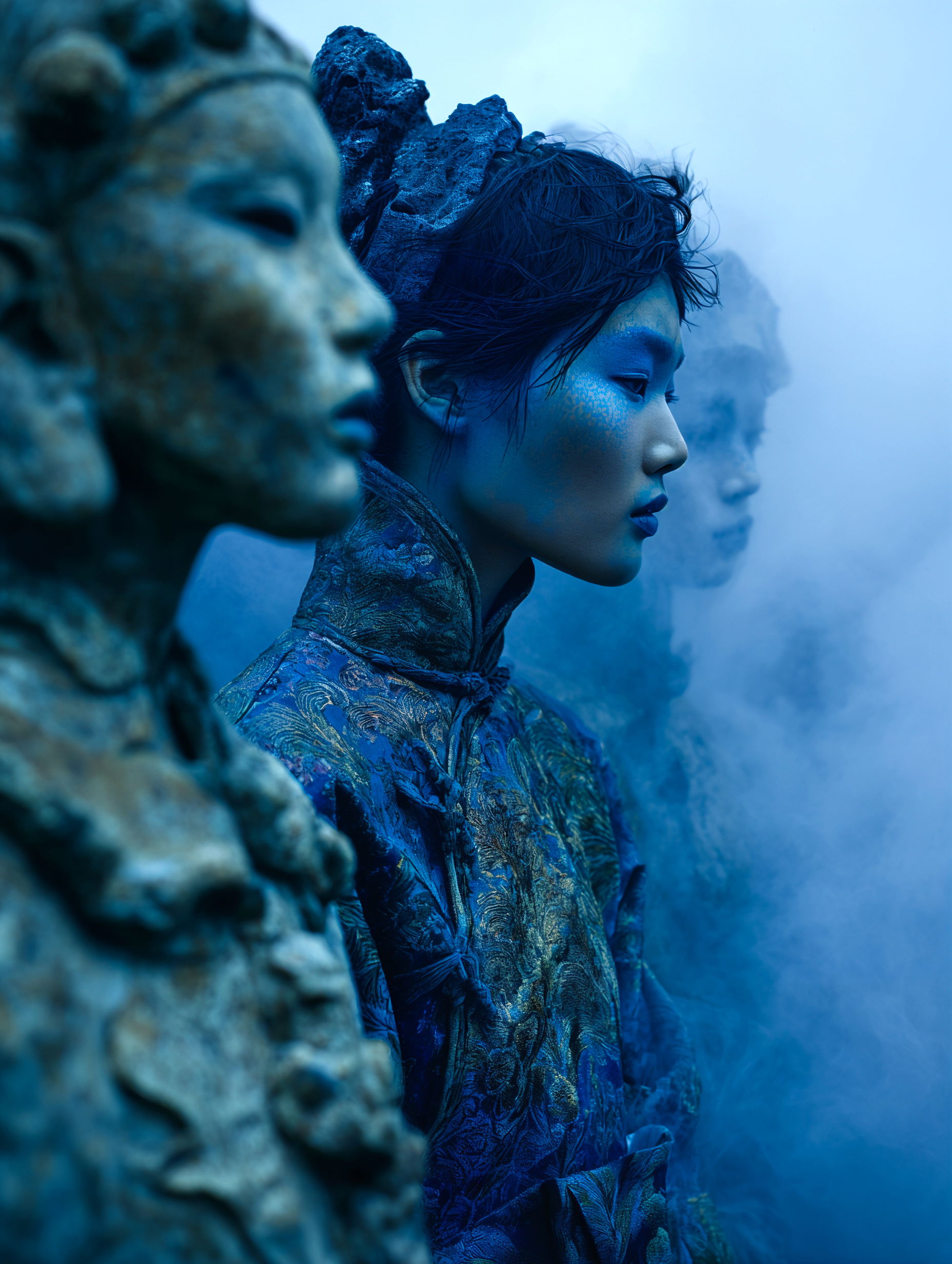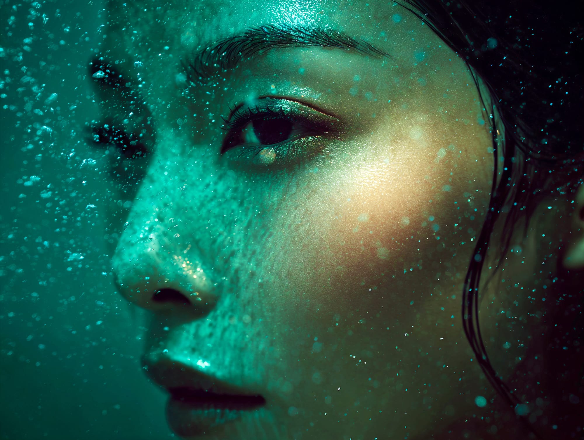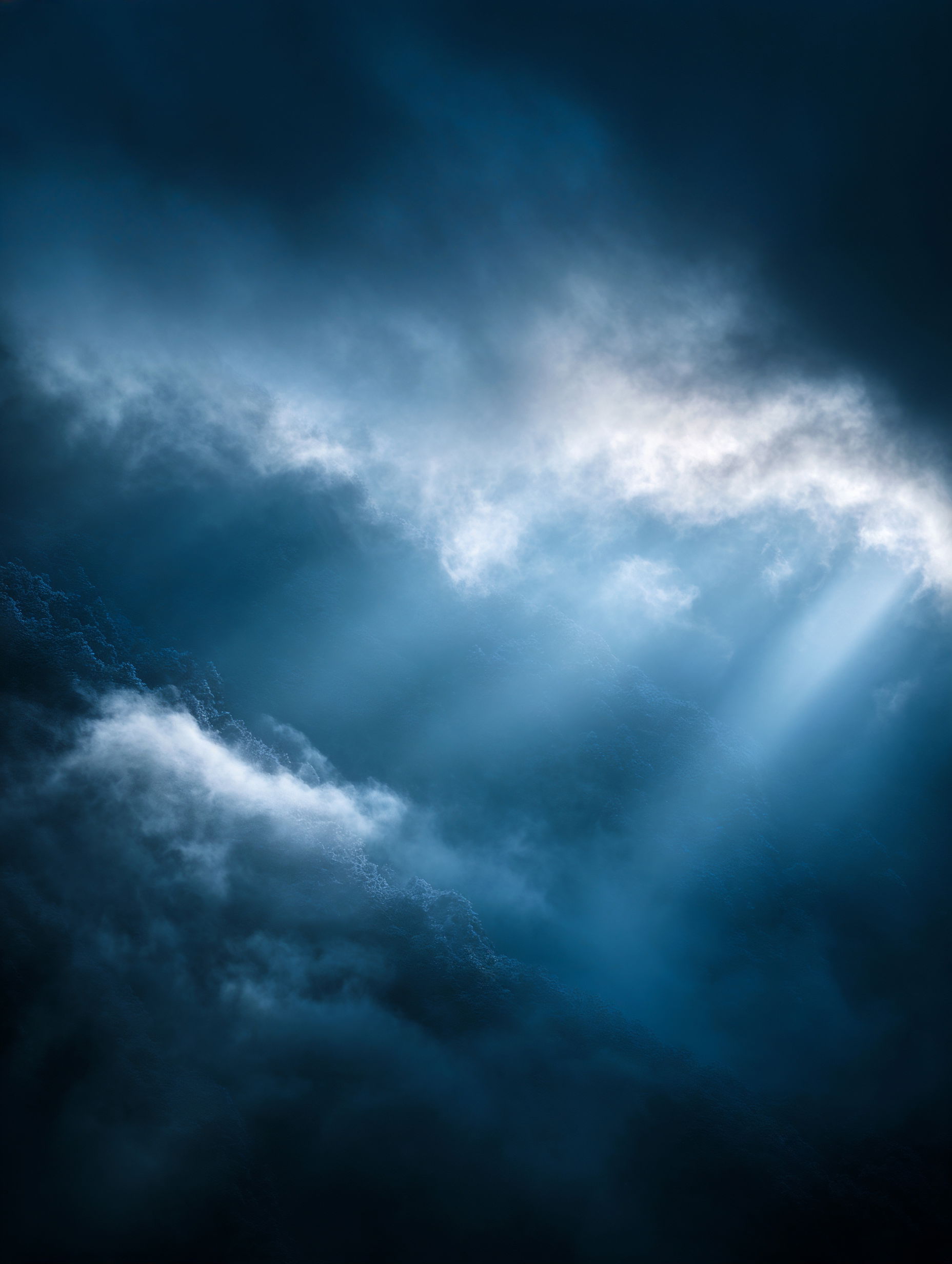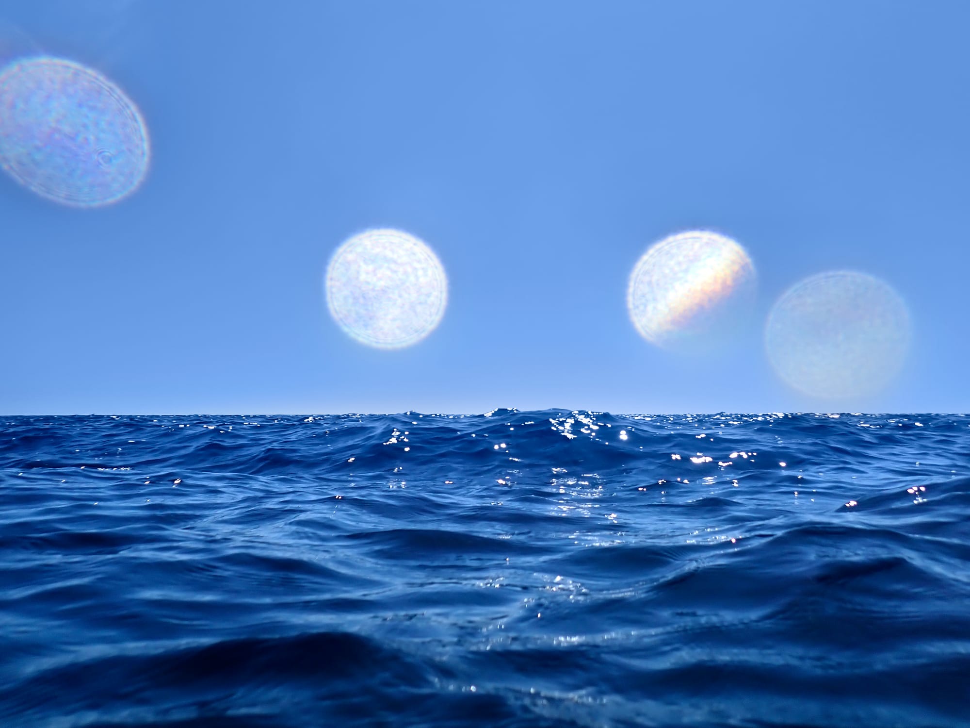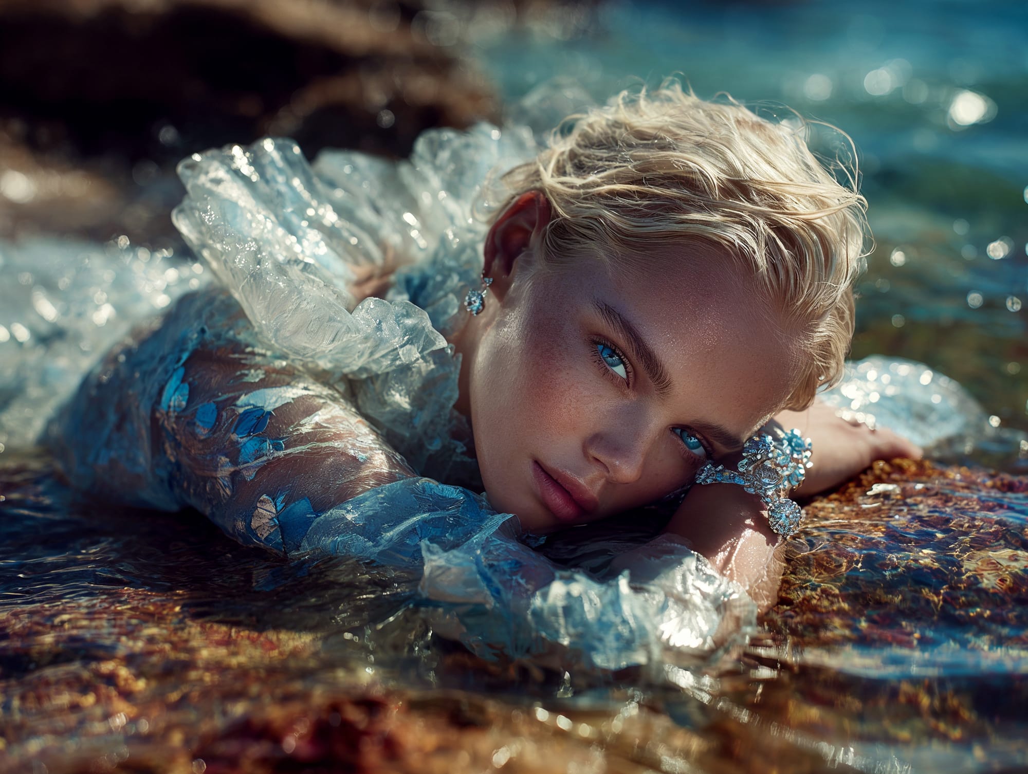 L'eau est l’origine de la vie. La mer a failli m’engloutir, enfant ! Emporté au loin par la houle, le vent et les vagues de la mer Egée, aveuglé par les larmes, désespéré, et alors que je m’épuisais à revenir vers la côte, trois jeunes femmes sont sorties des flots comme par enchantement pour me ramener sur la plage. J’ai depuis, en mémoire, ces sirènes me consolant, et, glissant dans l’eau brillante avec moi, transformant cette aventure terrifiante en pure féerie. On dit que si vous êtes sincère et que votre cœur est pur, elles demeurent avec vous pour toujours. Je revis constamment ce souvenir à la fois menaçant et d'une beauté irréelle et rêve de retrouver mes fées. Depuis, je parcours les mers pour les retrouver, revoir leurs visages, fasciné par l’harmonie de leurs corps caressant l’océan. Chaque photographie est une prière silencieuse, une tentative de capturer à nouveau la magie de cette rencontre. Alors je glisse encore, inlassablement, au coeur des vagues, dans le scintillement des crêtes, le miroitement de l’eau, à la recherche de la lumière, de la couleur exacte de l’eau ce jour là, de cet instant magique, dans l’Eternité. Je plonge dans la splendeur de l’onde en quête de preuve tangible de ce que j ai vécu, de la confirmation que ce souvenir d'enfant était plus qu’un songe. Je sais que pour les recontrer je dois devenir l’eau, me fondre dans le bleu de l'Azur. J’immortalise leur royaume pour les rappeler, peut-être aussi les rejoindre et ne surtout ne jamais les oublier.