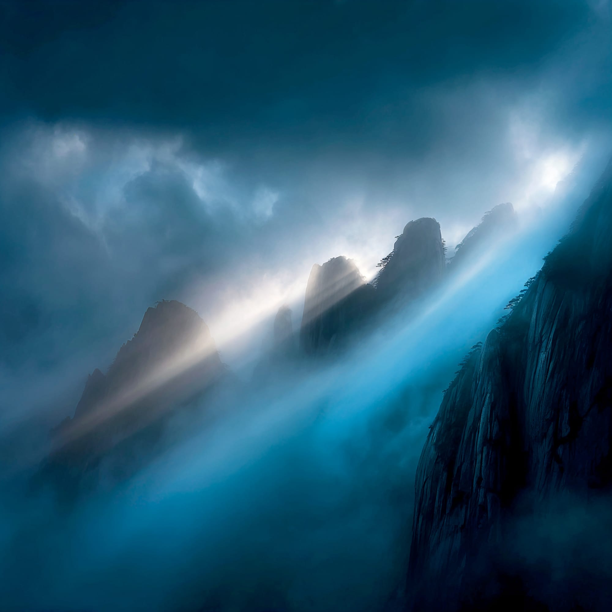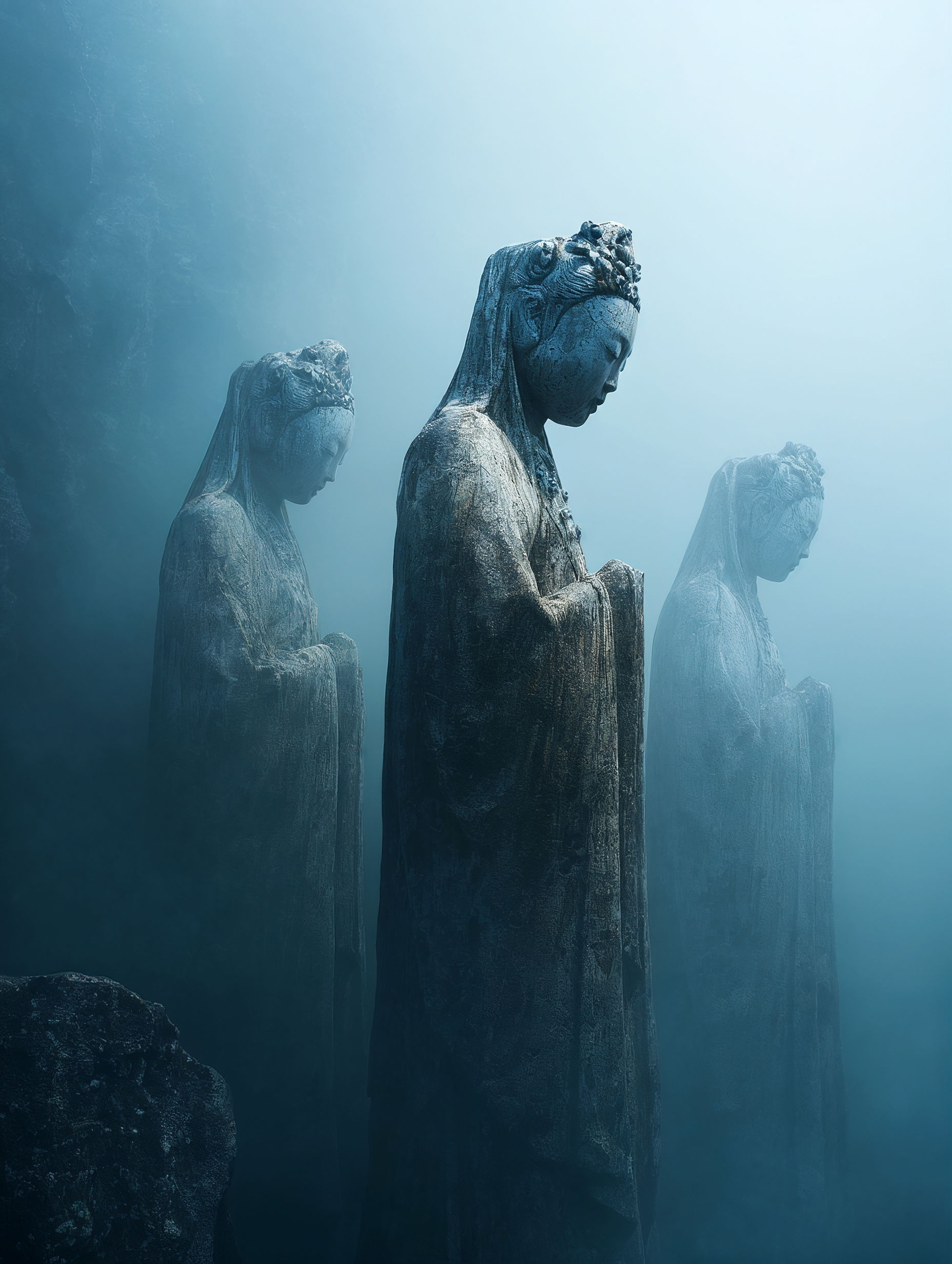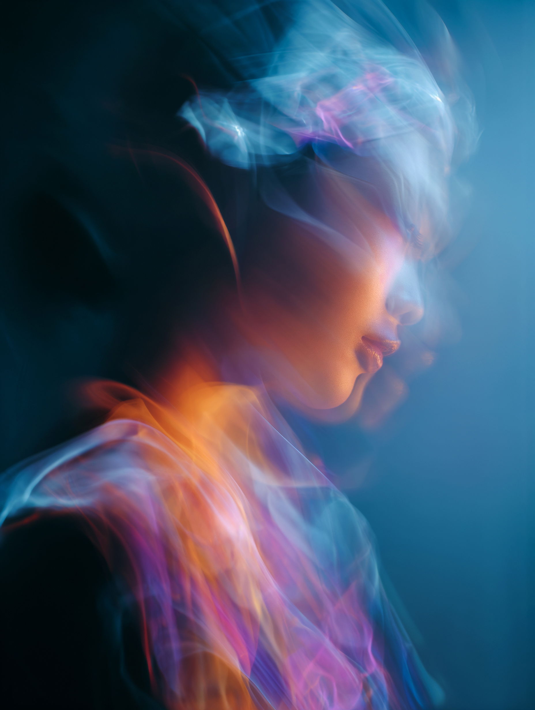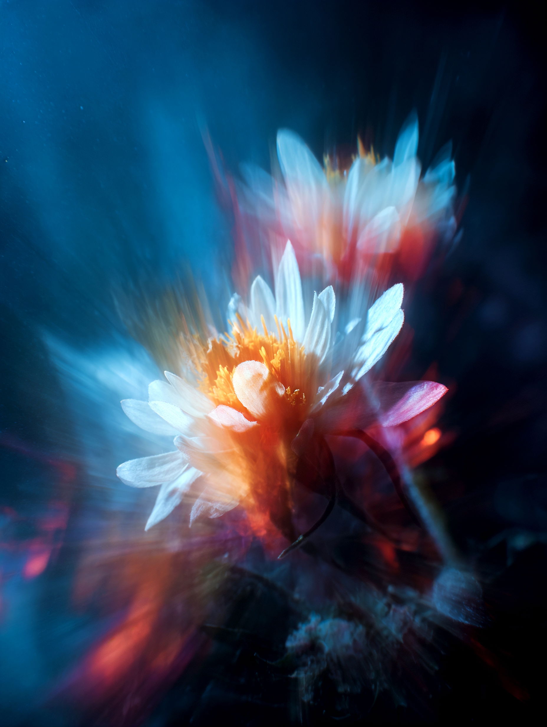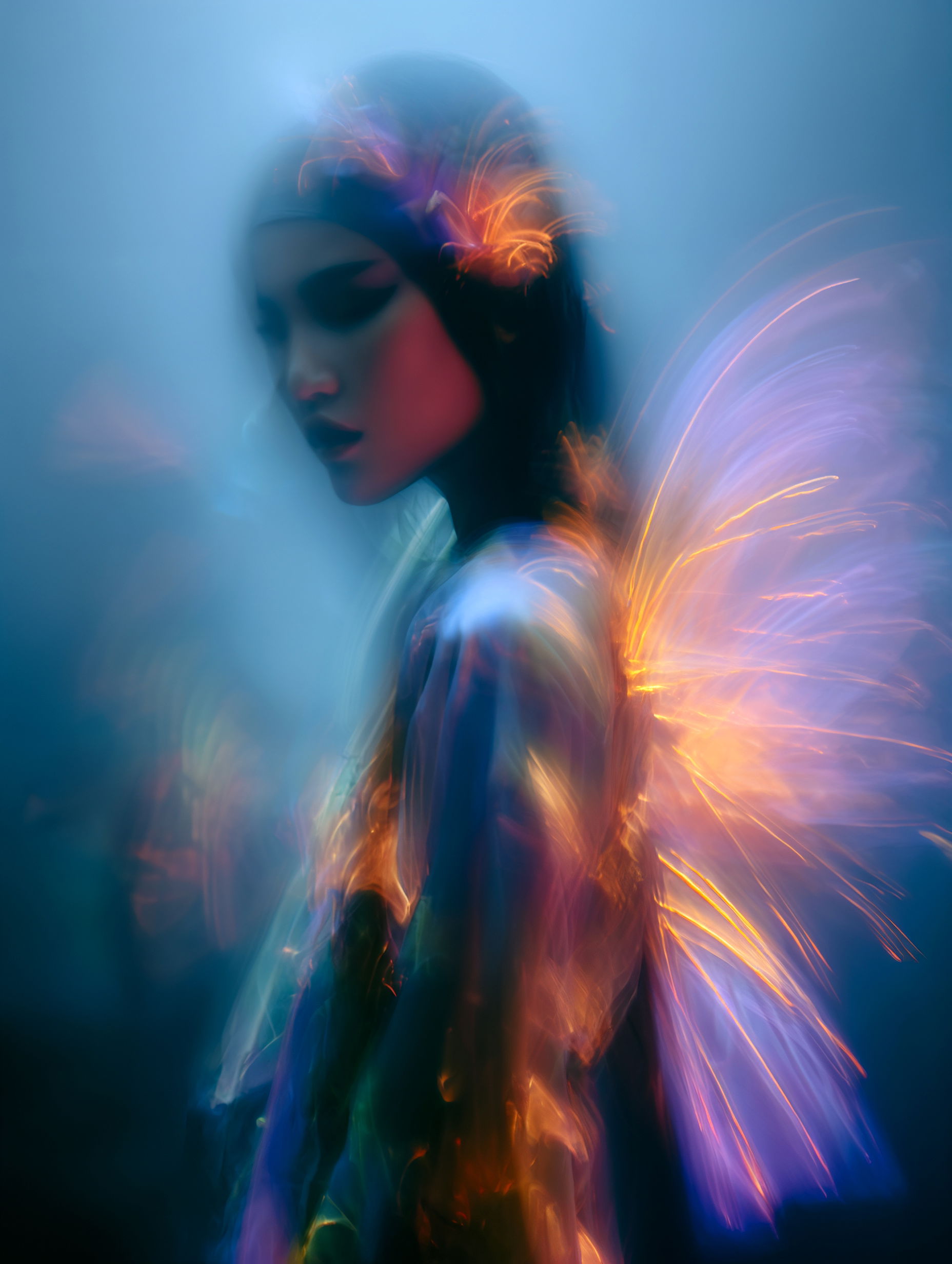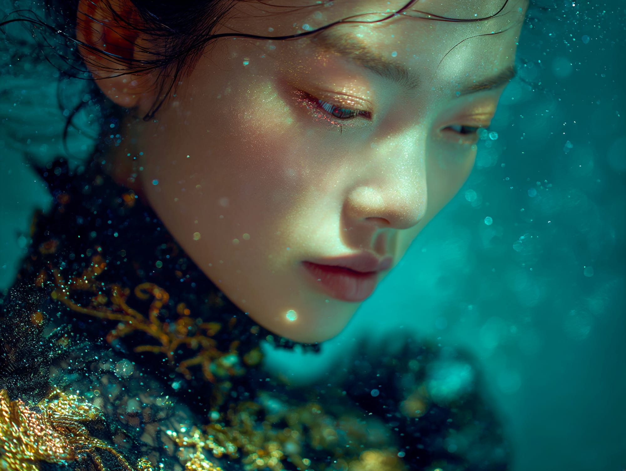L'eau est l’origine de la vie. La mer a failli m’engloutir, enfant ! Emporté au loin par la houle, le vent et les vagues de la mer Egée, aveuglé par les larmes, désespéré, et alors que je m’épuisais à revenir vers la côte, trois jeunes femmes sont sorties des flots comme par enchantement pour me ramener sur la plage. J’ai depuis, en mémoire, ces sirènes me consolant, et, glissant dans l’eau brillante avec moi, transformant cette aventure terrifiante en pure féerie. On dit que si vous êtes sincère et que votre cœur est pur, elles demeurent avec vous pour toujours. Je revis constamment ce souvenir à la fois menaçant et d'une beauté irréelle et rêve de retrouver mes fées. Depuis, je parcours les mers pour les retrouver, revoir leurs visages, fasciné par l’harmonie de leurs corps caressant l’océan. Chaque photographie est une prière silencieuse, une tentative de capturer à nouveau la magie de cette rencontre. Alors je glisse encore, inlassablement, au coeur des vagues, dans le scintillement des crêtes, le miroitement de l’eau, à la recherche de la lumière, de la couleur exacte de l’eau ce jour là, de cet instant magique, dans l’Eternité. Je plonge dans la splendeur de l’onde en quête de preuve tangible de ce que j ai vécu, de la confirmation que ce souvenir d'enfant était plus qu’un songe. Je sais que pour les recontrer je dois devenir l’eau, me fondre dans le bleu de l'Azur. J’immortalise leur royaume pour les rappeler, peut-être aussi les rejoindre et ne surtout ne jamais les oublier.