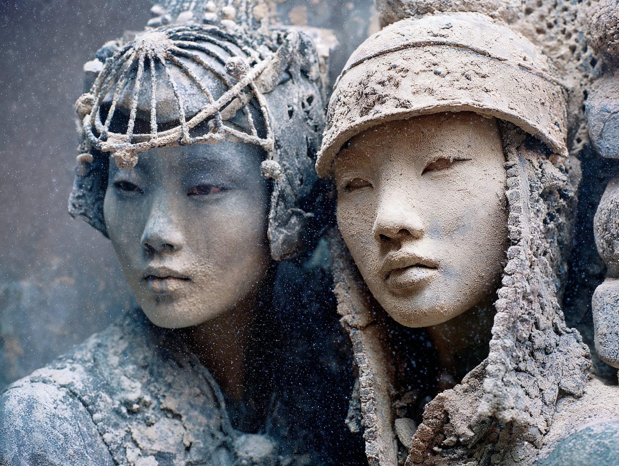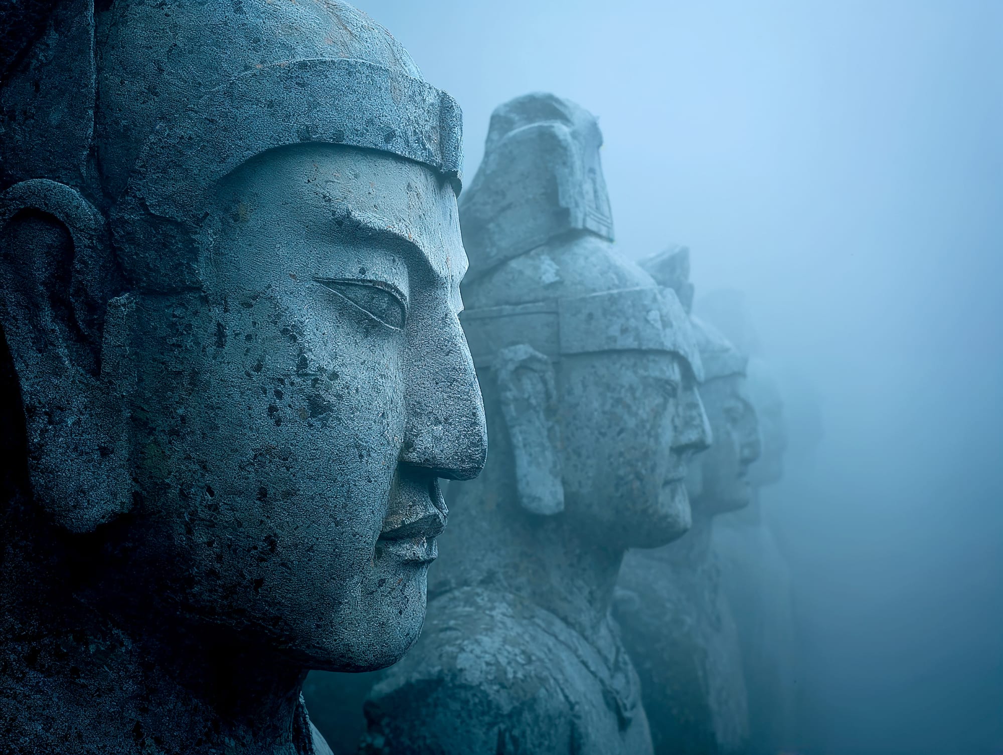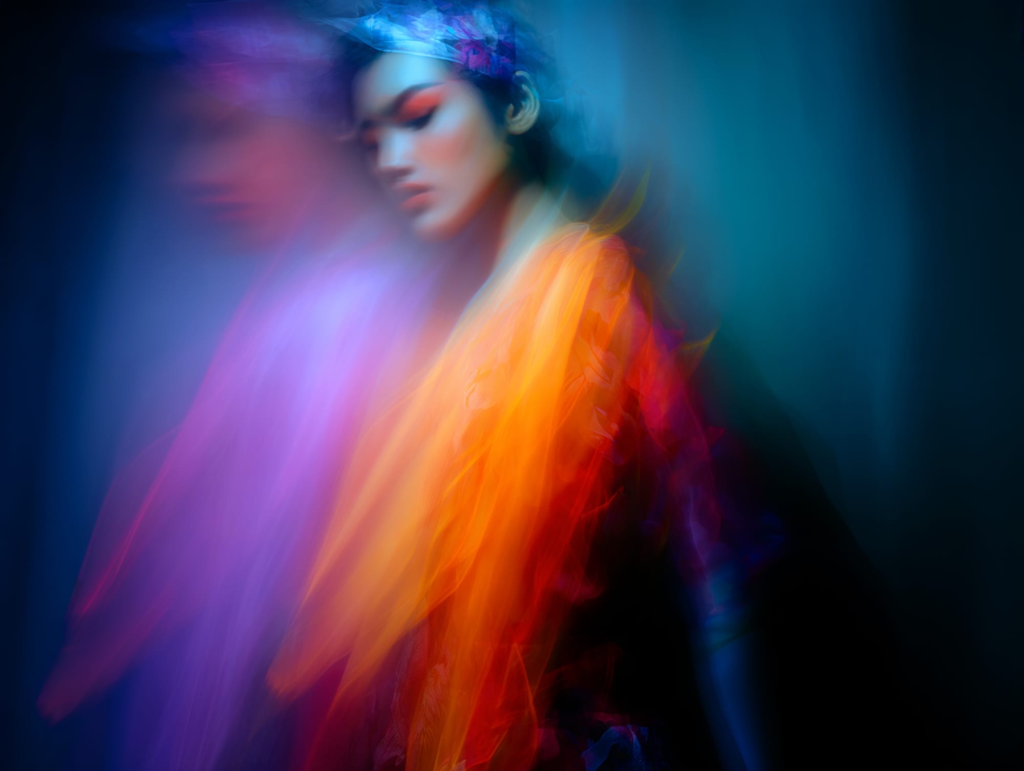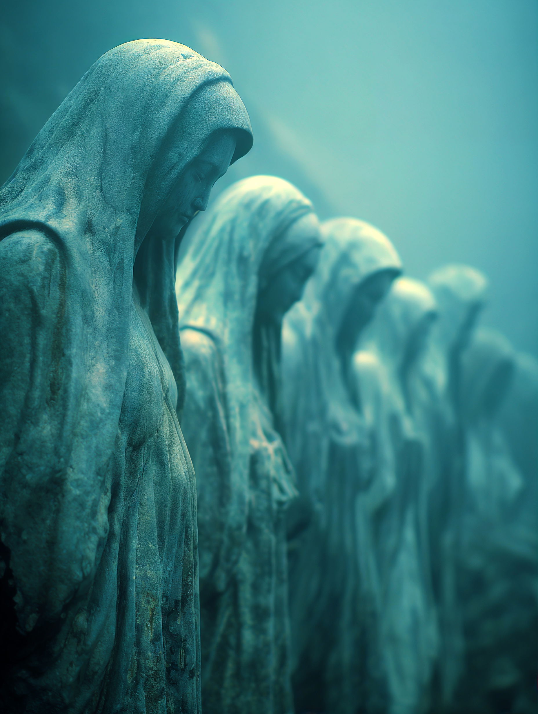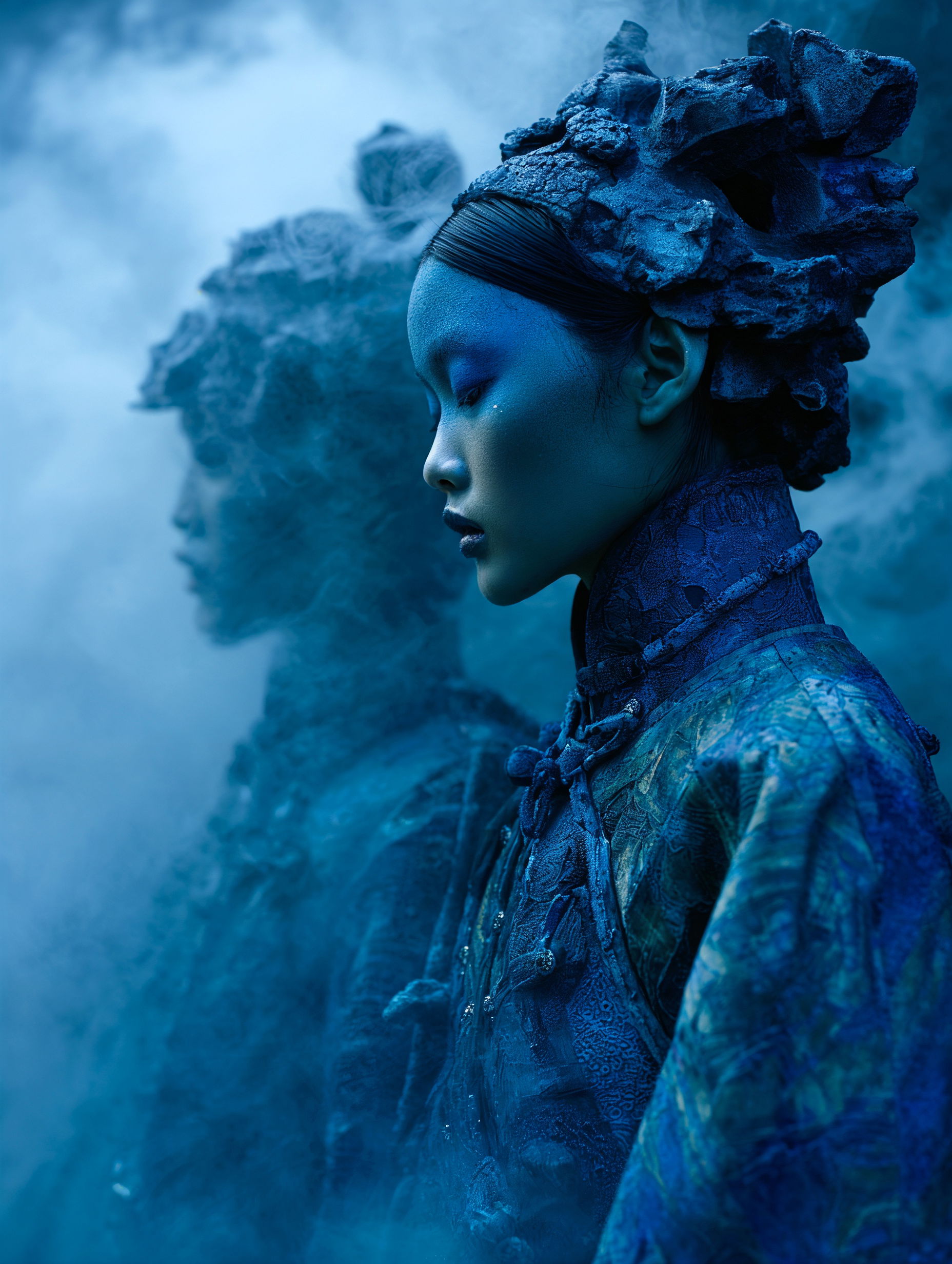 L'eau est l’origine de la vie. La mer a failli m’engloutir, enfant ! Emporté au loin par la houle, le vent et les vagues de la mer Egée, aveuglé par les larmes, désespéré, et alors que je m’épuisais à revenir vers la côte, trois jeunes femmes sont sorties des flots comme par enchantement pour me ramener sur la plage. J’ai depuis, en mémoire, ces sirènes me consolant, et, glissant dans l’eau brillante avec moi, transformant cette aventure terrifiante en pure féerie. On dit que si vous êtes sincère et que votre cœur est pur, elles demeurent avec vous pour toujours. Je revis constamment ce souvenir à la fois menaçant et d'une beauté irréelle et rêve de retrouver mes fées. Depuis, je parcours les mers pour les retrouver, revoir leurs visages, fasciné par l’harmonie de leurs corps caressant l’océan. Chaque photographie est une prière silencieuse, une tentative de capturer à nouveau la magie de cette rencontre. Alors je glisse encore, inlassablement, au coeur des vagues, dans le scintillement des crêtes, le miroitement de l’eau, à la recherche de la lumière, de la couleur exacte de l’eau ce jour là, de cet instant magique, dans l’Eternité. Je plonge dans la splendeur de l’onde en quête de preuve tangible de ce que j ai vécu, de la confirmation que ce souvenir d'enfant était plus qu’un songe. Je sais que pour les recontrer je dois devenir l’eau, me fondre dans le bleu de l'Azur. J’immortalise leur royaume pour les rappeler, peut-être aussi les rejoindre et ne surtout ne jamais les oublier.
