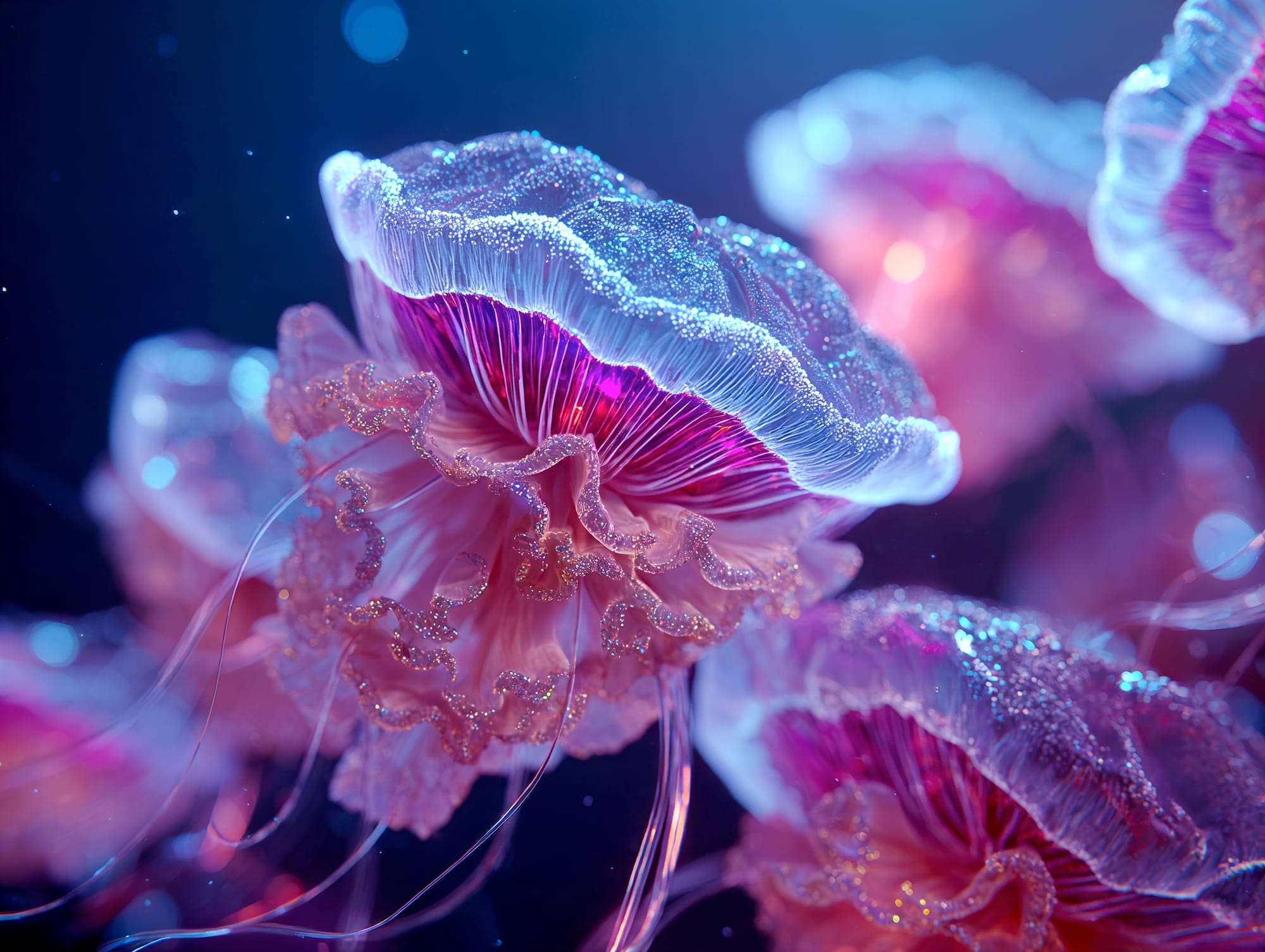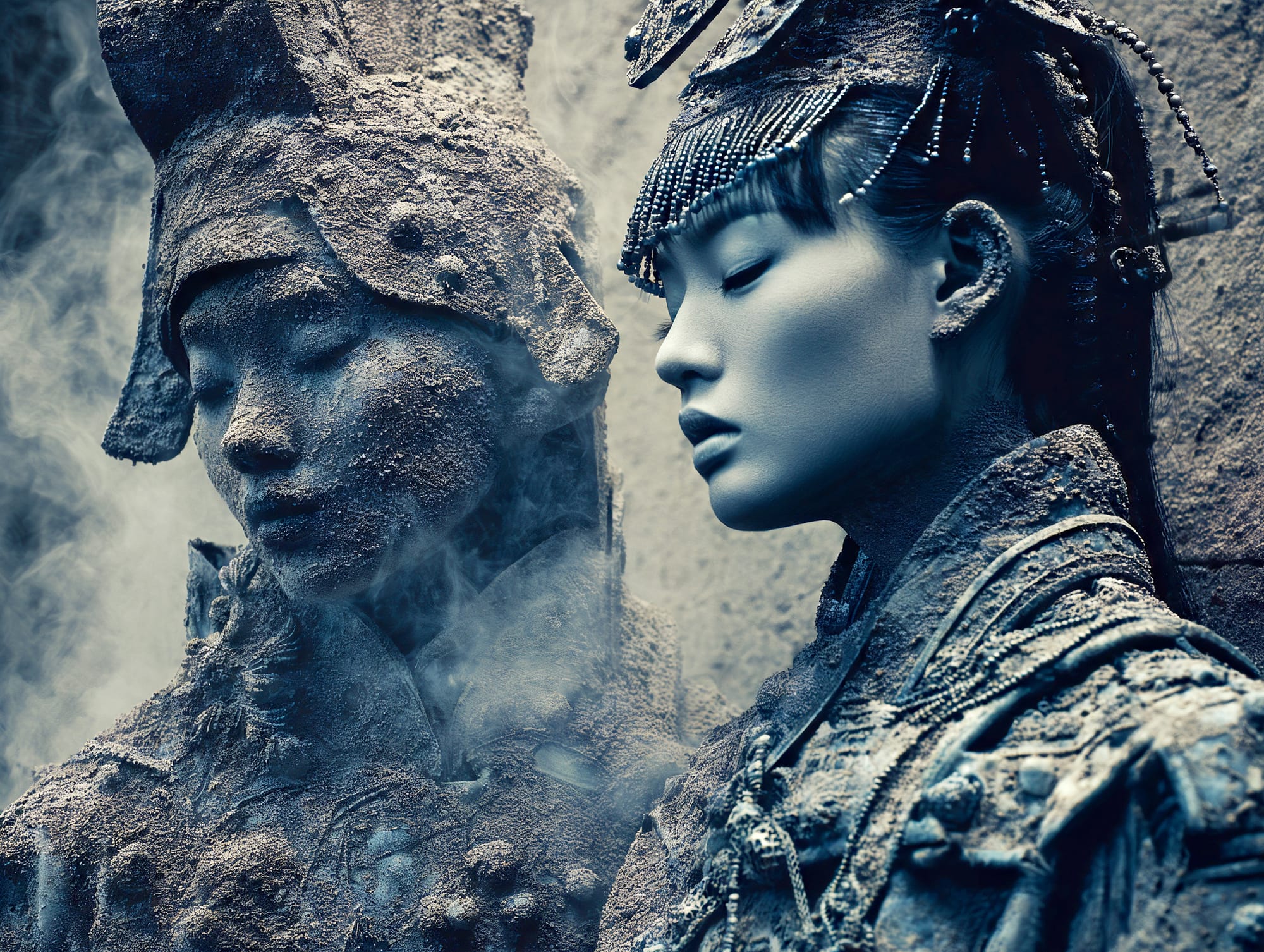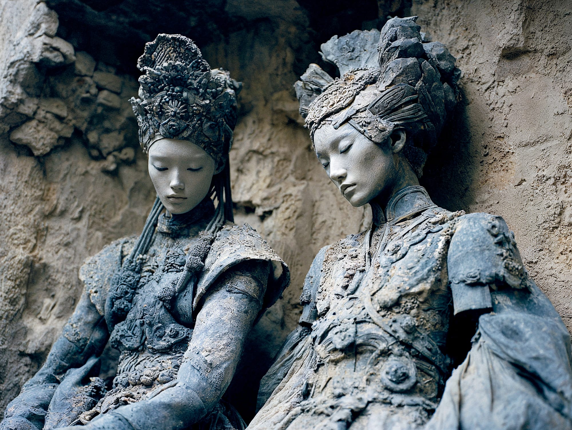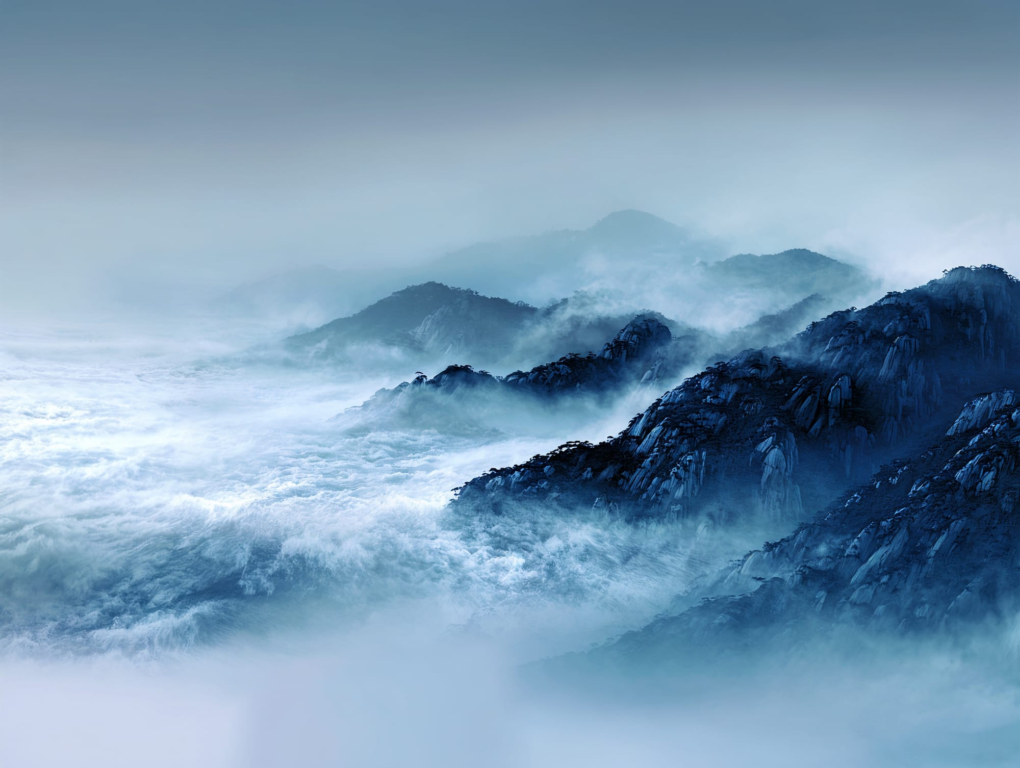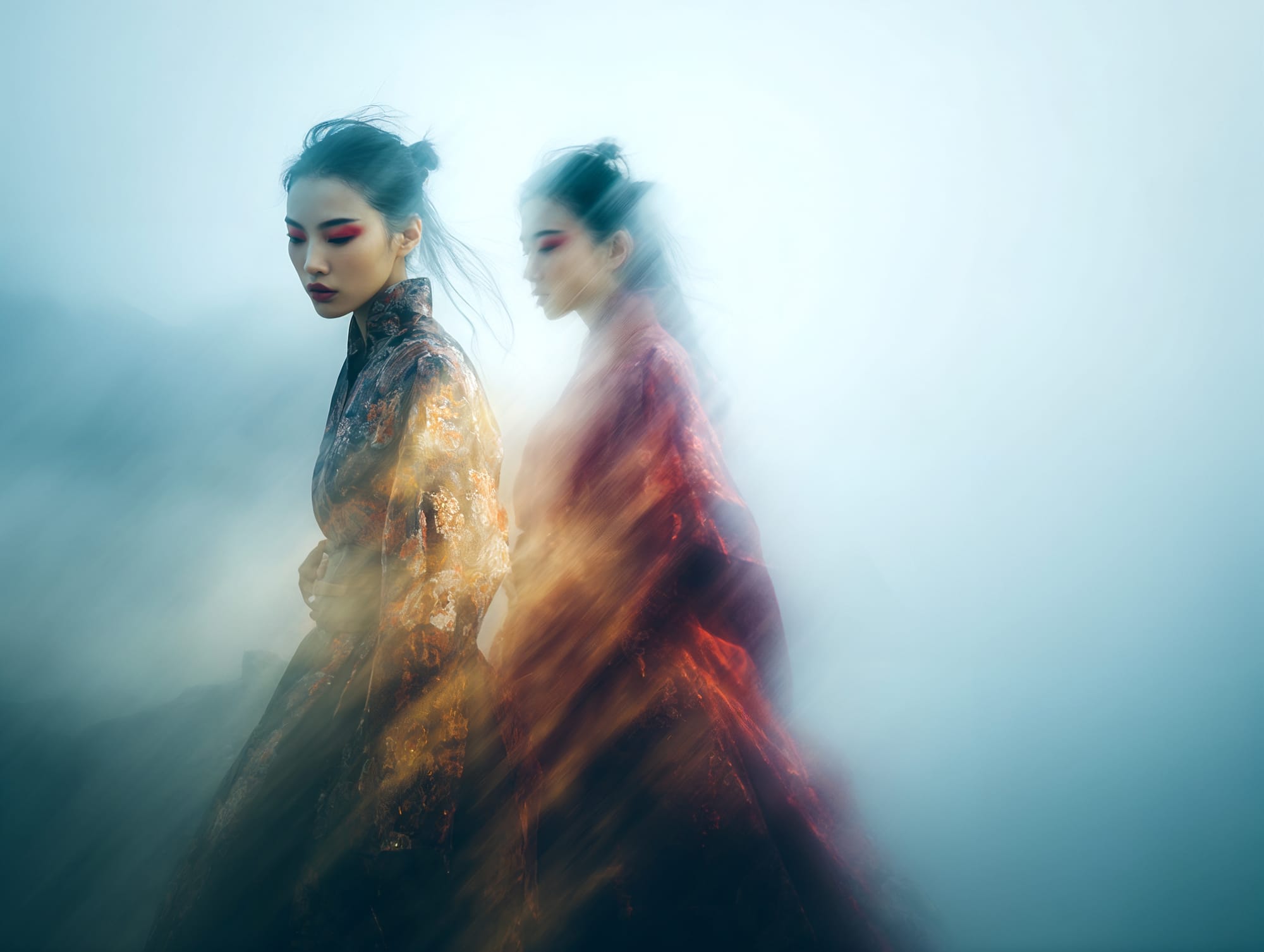 L'eau est l’origine de la vie. La mer a failli m’engloutir, enfant ! Emporté au loin par la houle, le vent et les vagues de la mer Egée, aveuglé par les larmes, désespéré, et alors que je m’épuisais à revenir vers la côte, trois jeunes femmes sont sorties des flots comme par enchantement pour me ramener sur la plage. J’ai depuis, en mémoire, ces sirènes me consolant, et, glissant dans l’eau brillante avec moi, transformant cette aventure terrifiante en pure féerie. On dit que si vous êtes sincère et que votre cœur est pur, elles demeurent avec vous pour toujours. Je revis constamment ce souvenir à la fois menaçant et d'une beauté irréelle et rêve de retrouver mes fées. Depuis, je parcours les mers pour les retrouver, revoir leurs visages, fasciné par l’harmonie de leurs corps caressant l’océan. Chaque photographie est une prière silencieuse, une tentative de capturer à nouveau la magie de cette rencontre. Alors je glisse encore, inlassablement, au coeur des vagues, dans le scintillement des crêtes, le miroitement de l’eau, à la recherche de la lumière, de la couleur exacte de l’eau ce jour là, de cet instant magique, dans l’Eternité. Je plonge dans la splendeur de l’onde en quête de preuve tangible de ce que j ai vécu, de la confirmation que ce souvenir d'enfant était plus qu’un songe. Je sais que pour les recontrer je dois devenir l’eau, me fondre dans le bleu de l'Azur. J’immortalise leur royaume pour les rappeler, peut-être aussi les rejoindre et ne surtout ne jamais les oublier.